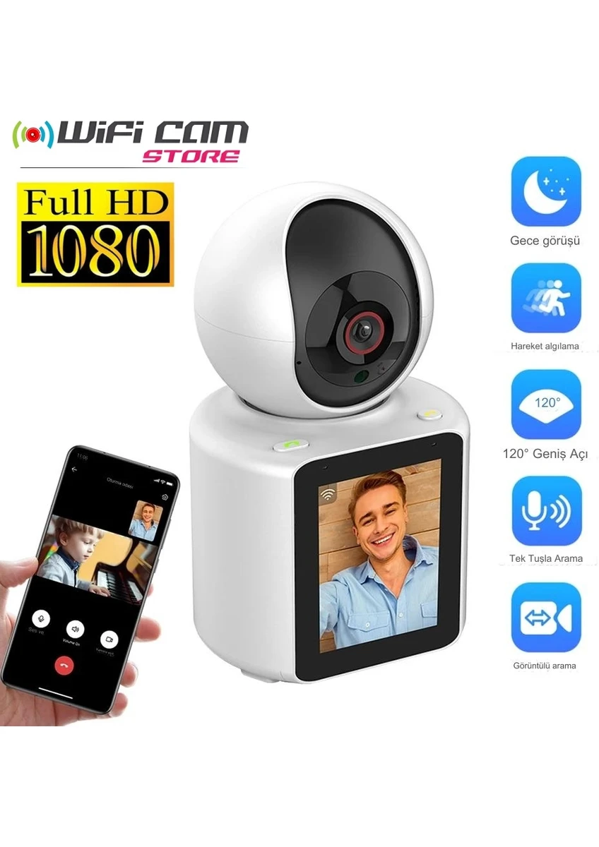 Wificam Plus Ekranlı Görüntülü Görüşme Sağlayan Yeni Nesil Akıllı Kamera Ev-Işyeri-Ofis-Bebek-Yaşlı Hasta Kamerası